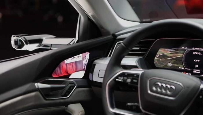 - Audi e-tron с виртуальными наружными зеркалами (OLED-дисплеи в дверях) для Европы. (Audi Ireland)