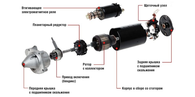 - Осмотрите все соединения на стартере и аккумуляторе.